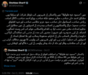 The incident has drawn sharp criticism worldwide. Pakistan, along with several other nations, condemned what it described as Israel’s “dastardly attack” on the humanitarian flotilla. Prime Minister Shehbaz Sharif also weighed in, urging the immediate release of all detainees. In a post on X, he praised the “dignified participation” of Pakistani activists in the mission and reaffirmed the government’s demand for their safe return.
